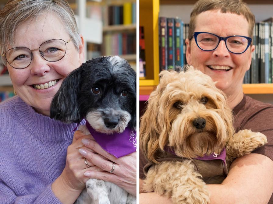 Vi har to læsehundeteams her på Roskilde Bibliotek; Marianne og Nala + Marianne og Abi.